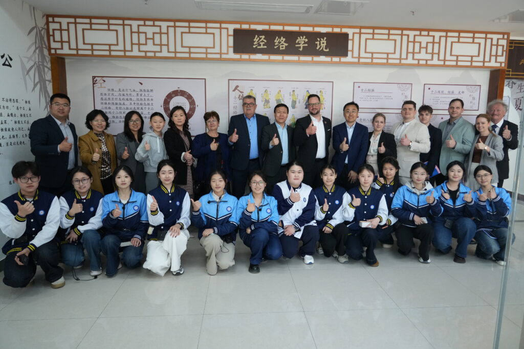 On April 7, Braun Tibor, Deputy Mayor of Kőszármisleny, Hungary, led a Hungarian delegation to visit Jinan Vocational College of nursing, where the “Bian Que Traditional Chinese Medicine Center in Kőszármisleny, Hungary” was officially inaugurated.